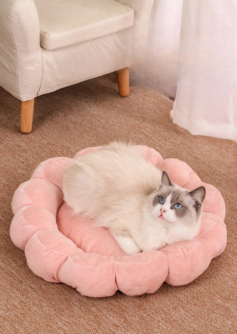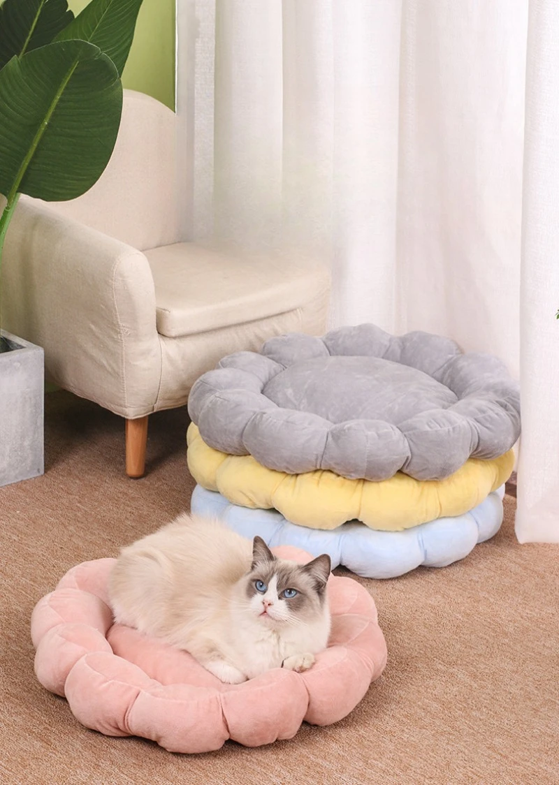 50x50cm Multi Color Petal Dog And Cat Nest Cute Half Surrounded Double Sided Short Plush Comfortable And Soft Pet And Cat Beds